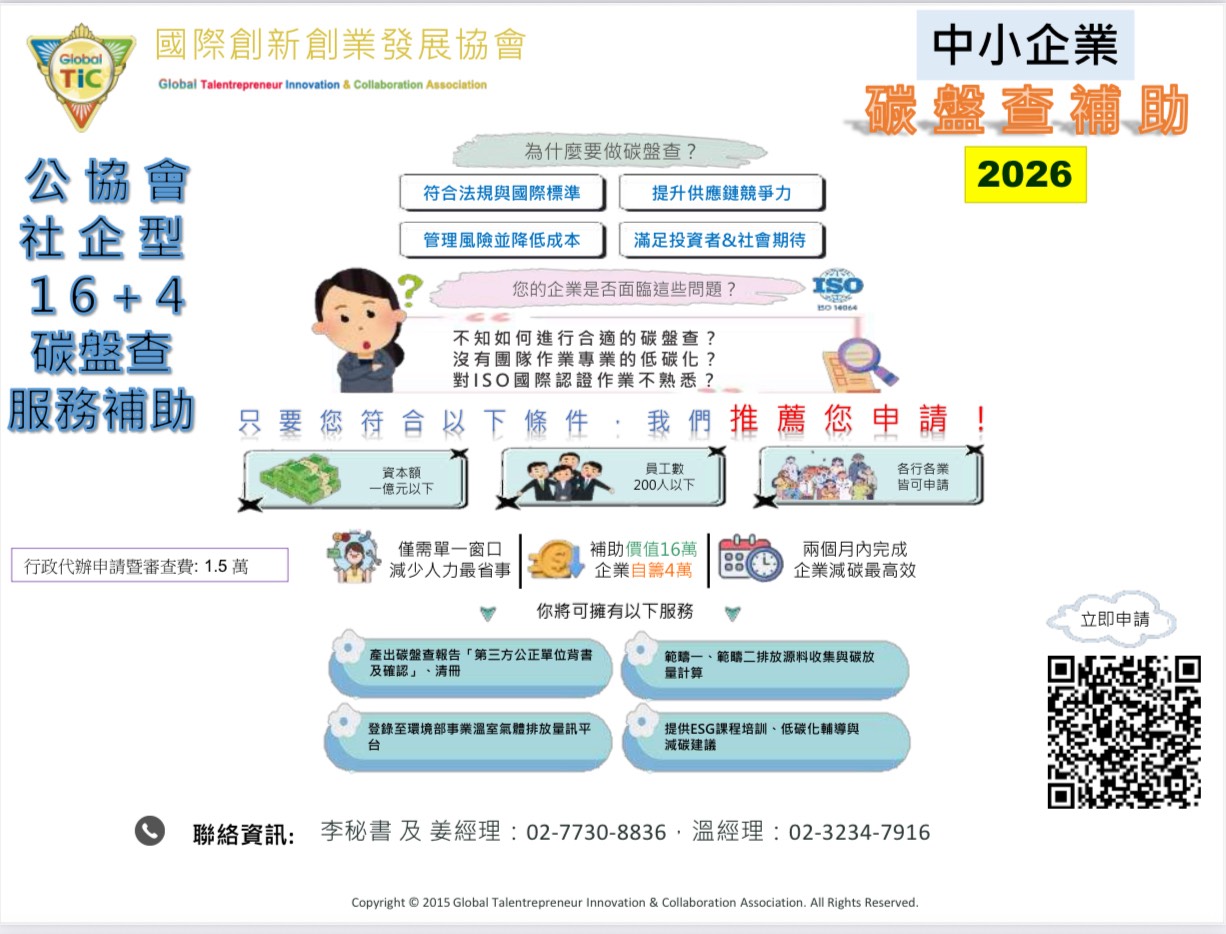 :: 「2026 公協會 16+4碳盤查補助計畫」